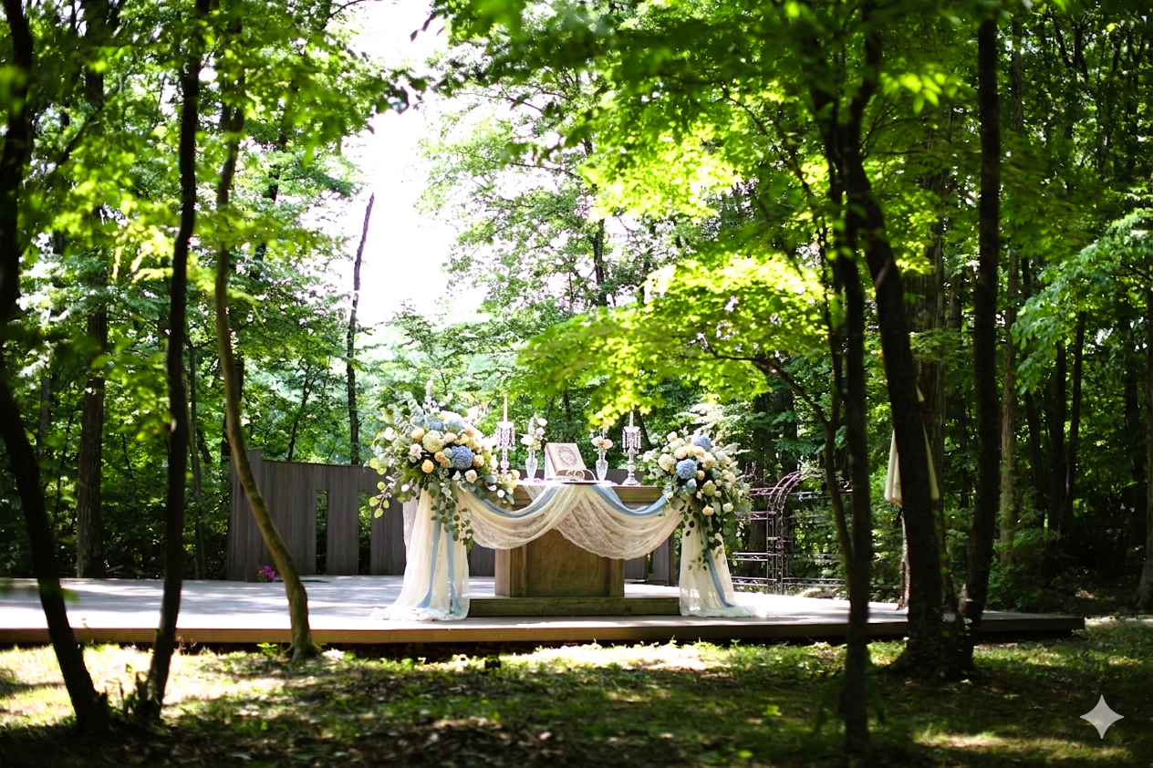那須高原でのレストランやカフェウエディングは、自然に優しく包まれる特別な一日になります。屋外のガーデンでは風と光が二人の誓いを祝福し、屋内の会場では温かく落ち着いた時間が、大切な人との絆を深めます。お気に入りの場所、思い出の場所で過ごす時間は、これからの物語を描く最高の舞台です。心に残る素敵な一日をSKSプロデュース寿が自由に楽しく、そして優しく演出いたします。